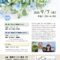 2025年9月7日(日)午後1時半~4時 第15回 心の健康セミナーを開催いたします。今回は「がんと共に生きる」と題して、腫瘍外科医であり淀川キリスト教病院理事長の笹子三津留様と、ご夫人で看護師の笹子真由子様をお招きし、 …